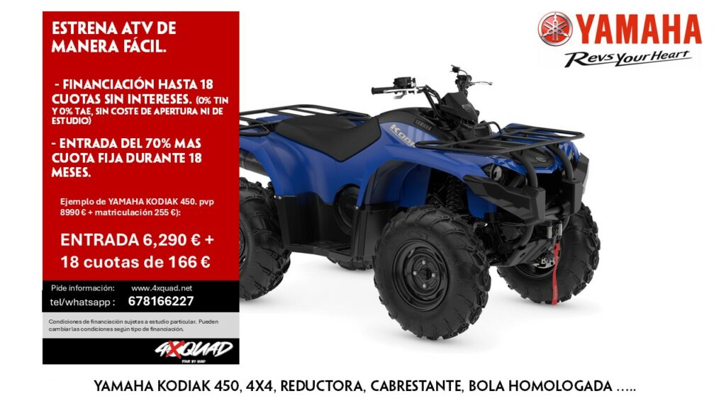 Ejemplo de YAMAHA KODIAK 450 . (p.v.p 8990 € + matriculación 255 €) :