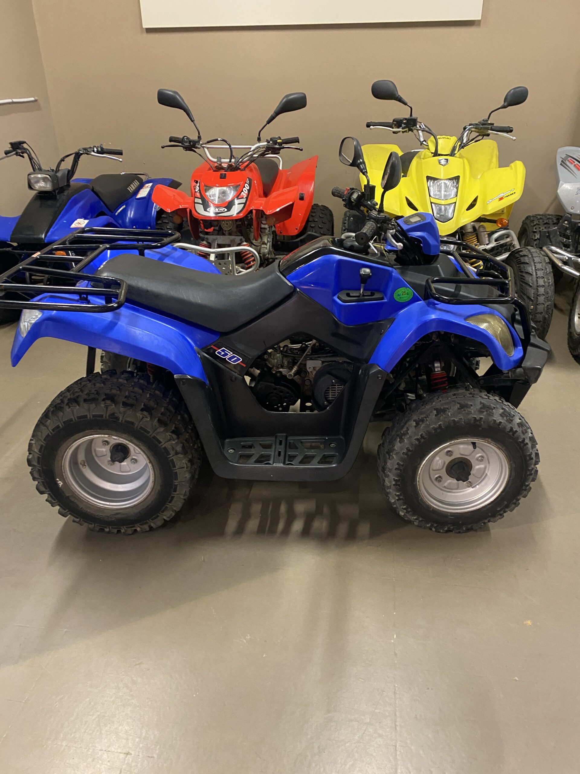 ¡Quad infantil marca KYMCO! Con un motor de 2 tiempos de 50 cc, con arranque eléctrico y mezclador automático,  perfecto para principiantes en el sector del quad de ocio.