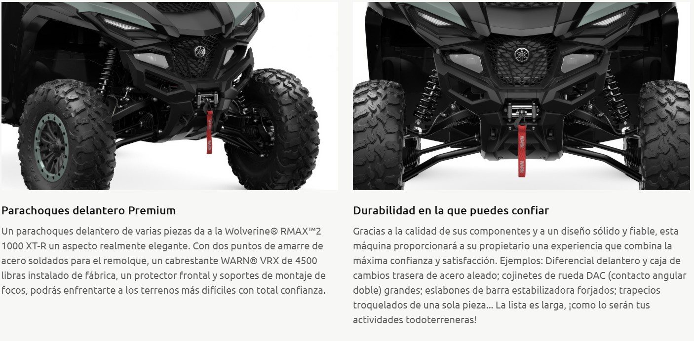 La Wolverine® RMAX™2 1000 XT-R sigue nuestra filosofía de desarrollo «Jin-Ki Kanno», que se traduce del japonés como «la euforia de sentirse en comunión con la máquina». El resultado es un todoterreno supercapaz, en el que tanto el conductor como el pasajero se sienten seguros para dominar los terrenos más difíciles.